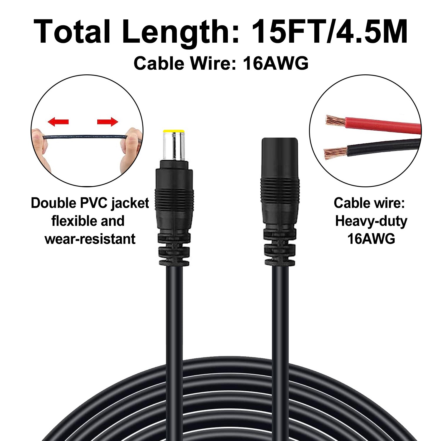 Cable de extensión DC7909 de 4,5 m/15 pies y 16 AWG, conector hembra a conector macho DC8mm, compatible con paneles solares de menos de 200 W y estaciones de energía portátiles Jackery 1000/500/300/240/1500/2000.