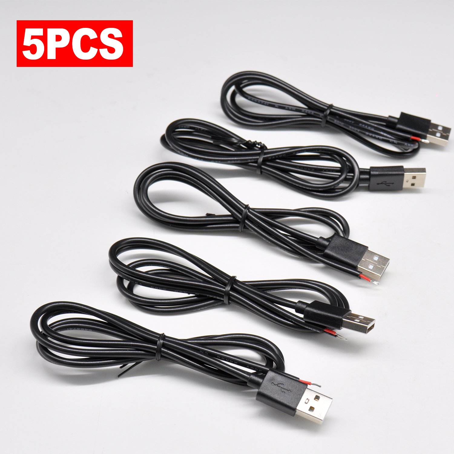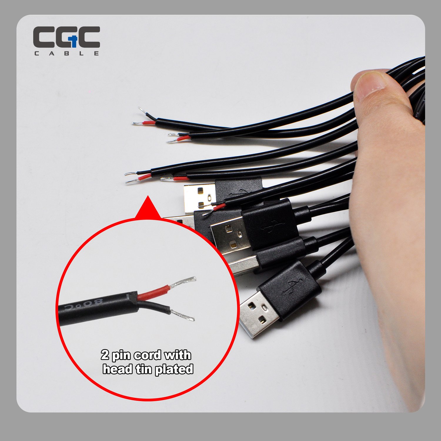 2 cables USB pigtail de 100 cm/39,3 pulgadas, 24 AWG, conector macho USB 2.0 de 2 pines, cable DIY, para tiras de LED, luces nocturnas, lámparas, relojes de mesa, cajas de TV, espejos y ventiladores.