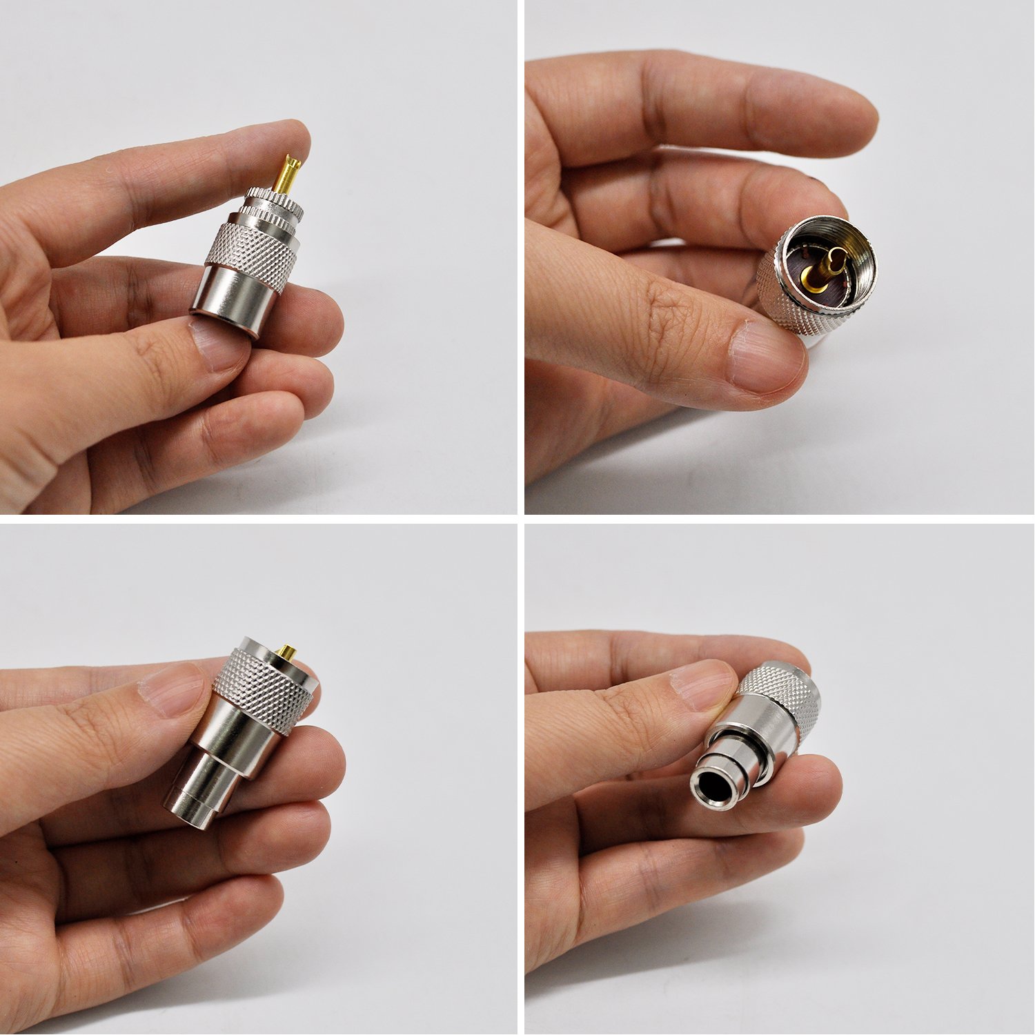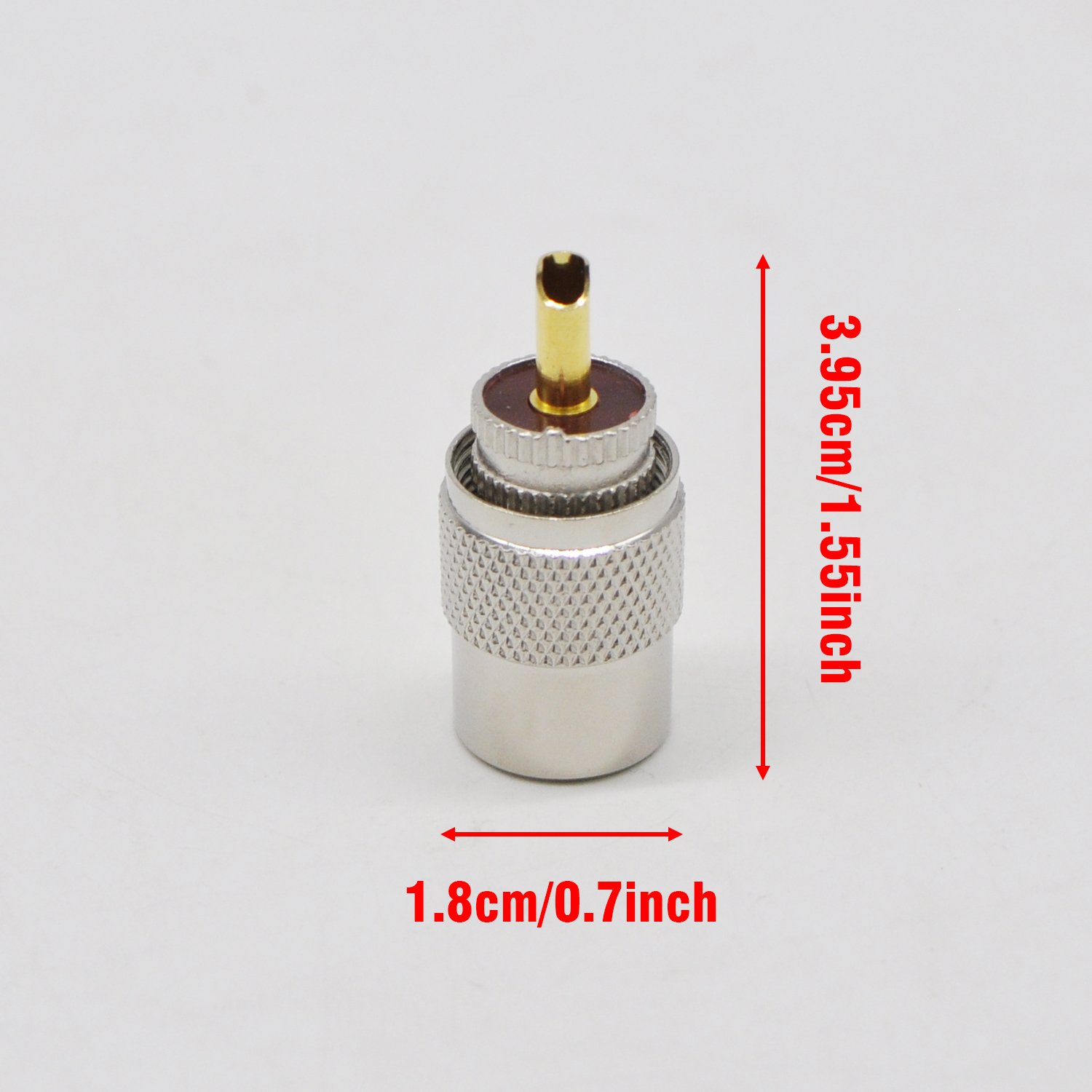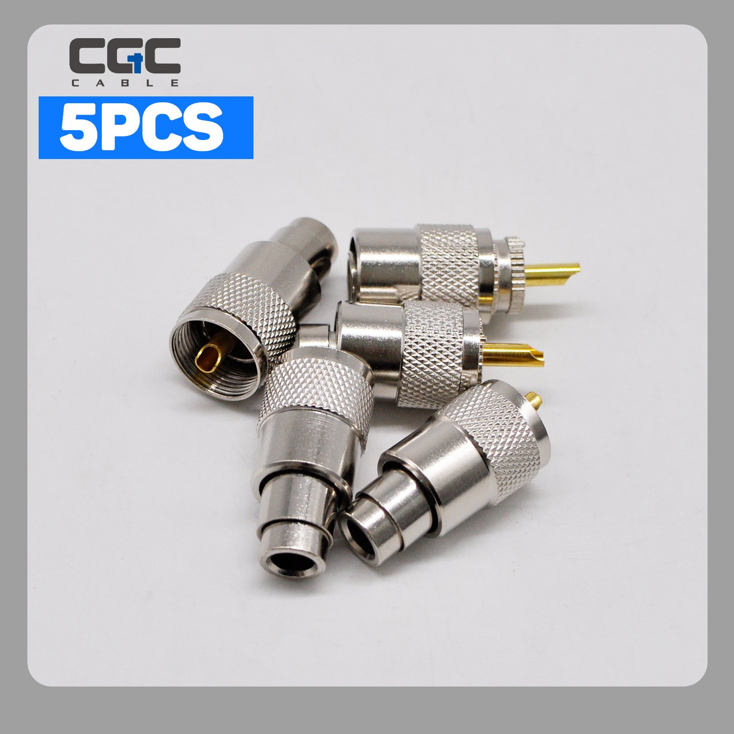 5 conectores de cable coaxial, RG8/RG8X, conector macho UHF PL-259 de latón niquelado para radioaficionados y televisión por satélite.