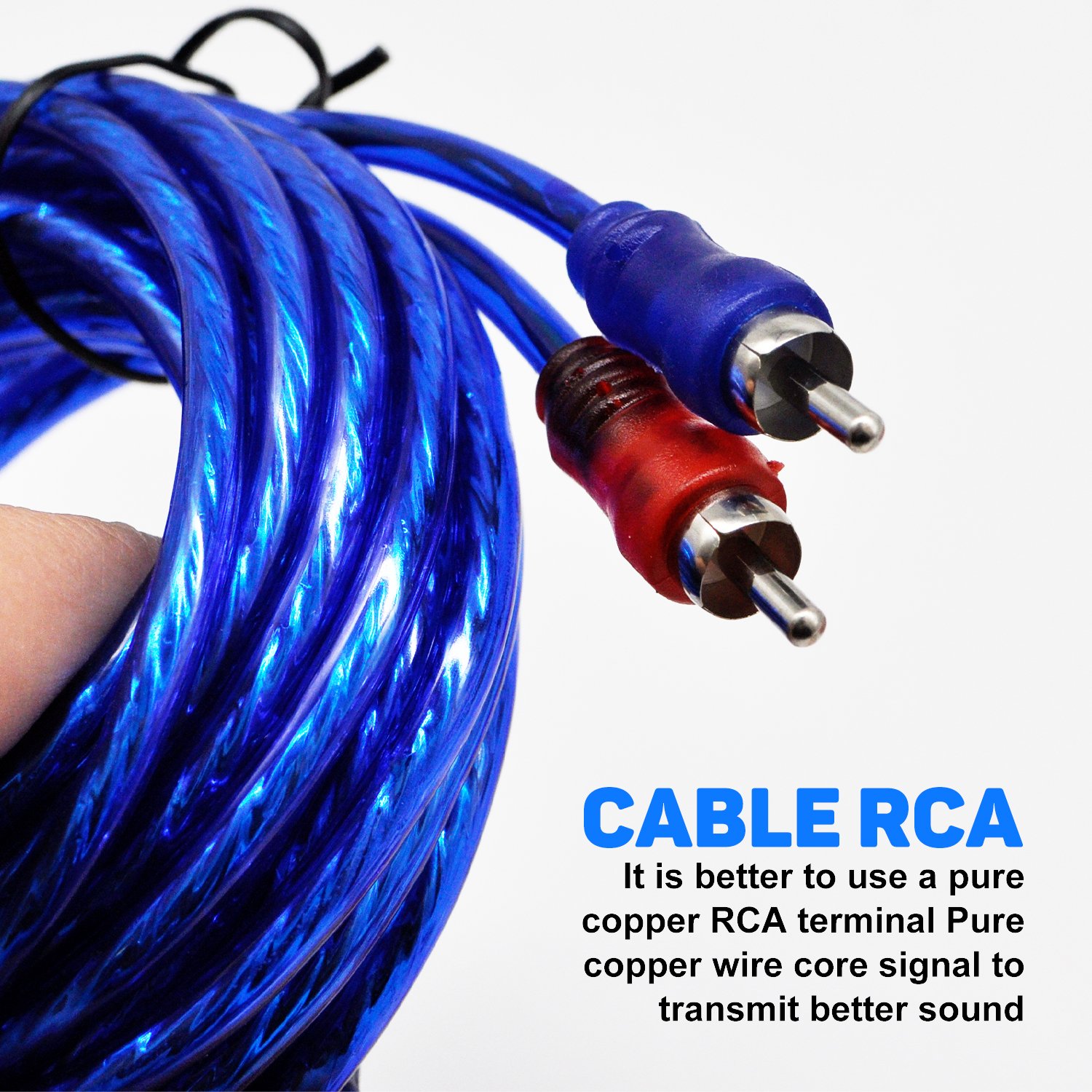 Kit de instalación de amplificador, kit de cableado para altavoces de audio para automóvil de 2,5 metros cuadrados (CCA), instalación completa de amplificador con cables RCA.