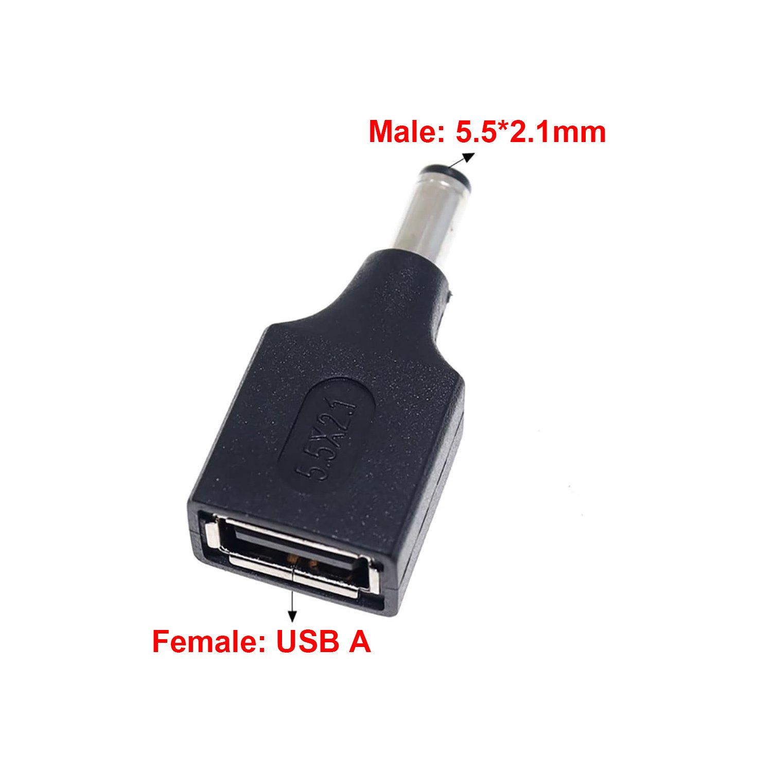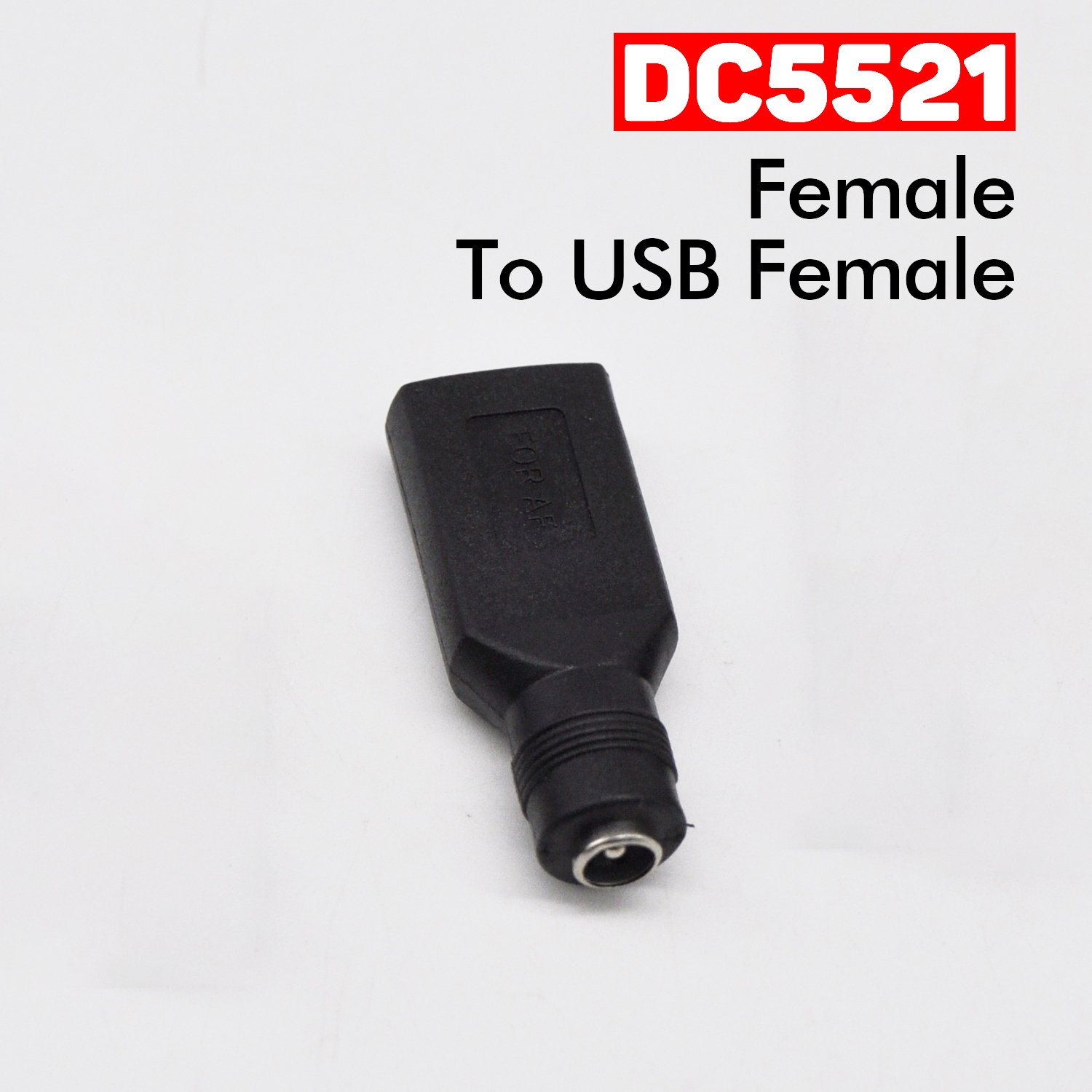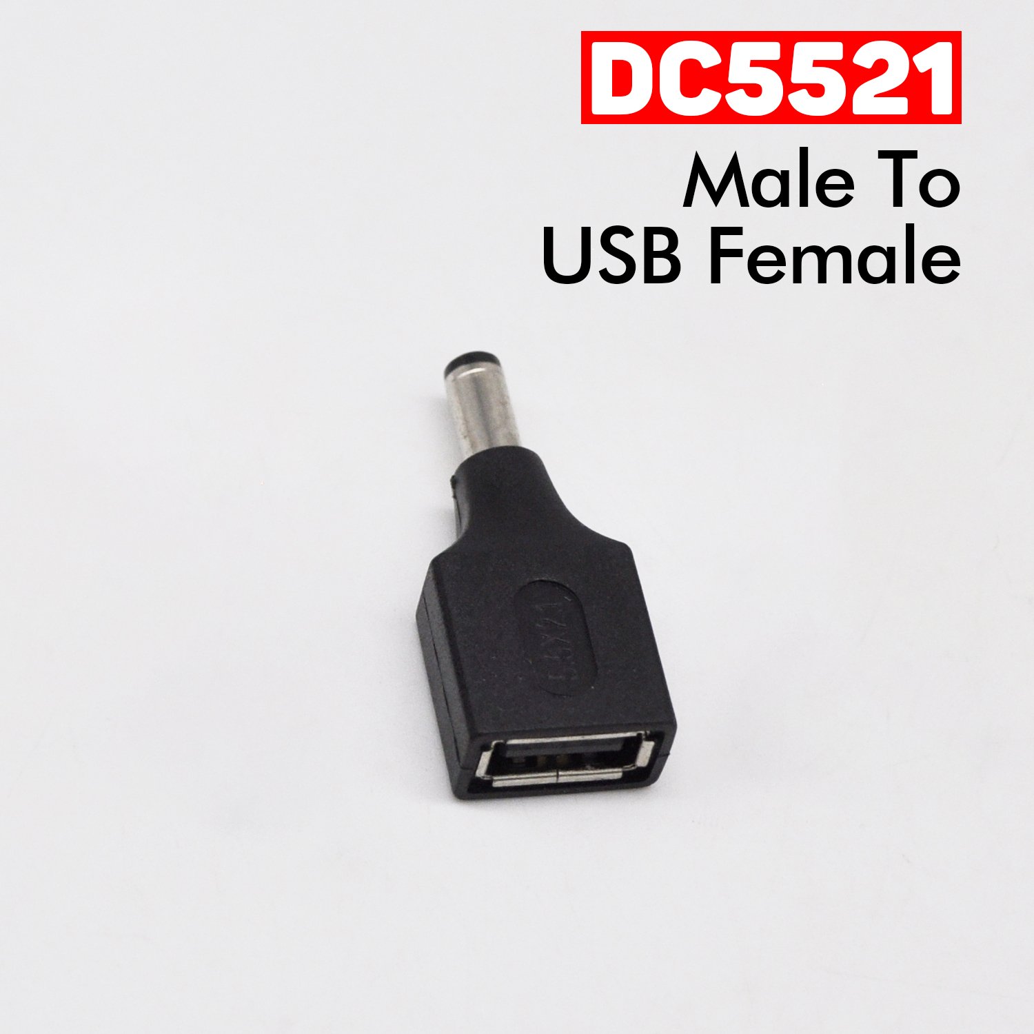 Commonly USB to DC Power Adapter, DC 5.5×2.1mm male Connector to USB Female, DC 5.5×2.1mm Female Connector to USB male, DC 5.5×2.1mm Female Connector to USB Female, DC 5.5×2.1mm male Connector to USB male.