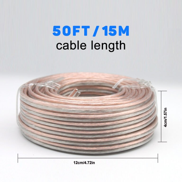 15m/50FT 20AWG Transparent Speaker Wire Cable for stereo, CCA & TCCA materials, home theater speakers, surround sound, radio (Note: it’s not the power cable, cannot be used for power connection)