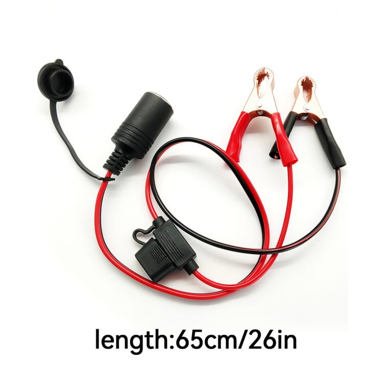 16AWG Car Plug Extension Cord, Female Car Plug Socket To Battery Alligator Clips with 10A Fuse,For Car Battery Clamp Extension Cable, Car Charger, Car Tire Pump(65cm/26in) , without Battery