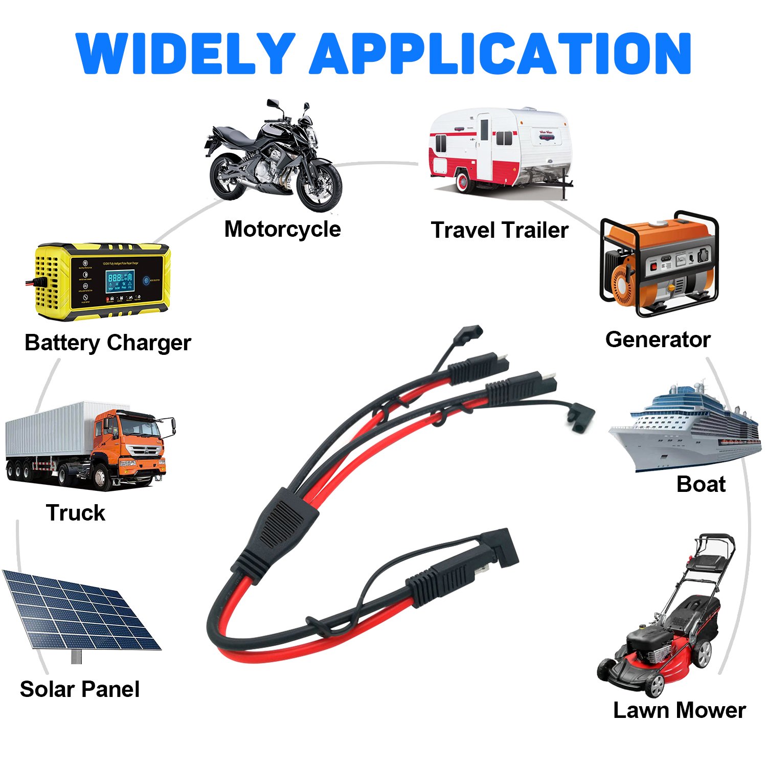 10AWG 60cm/2FT SAE Quick Connect Harness, Sae Extension Cable with Dust Cap, Include 5Fuse(10/15/20/25/30A), Quick Disconnect O-Ring Connector, SAE Battery Cable , for Solar Panel, Motorcycle, Boat, Wind Power Parts & Accessories