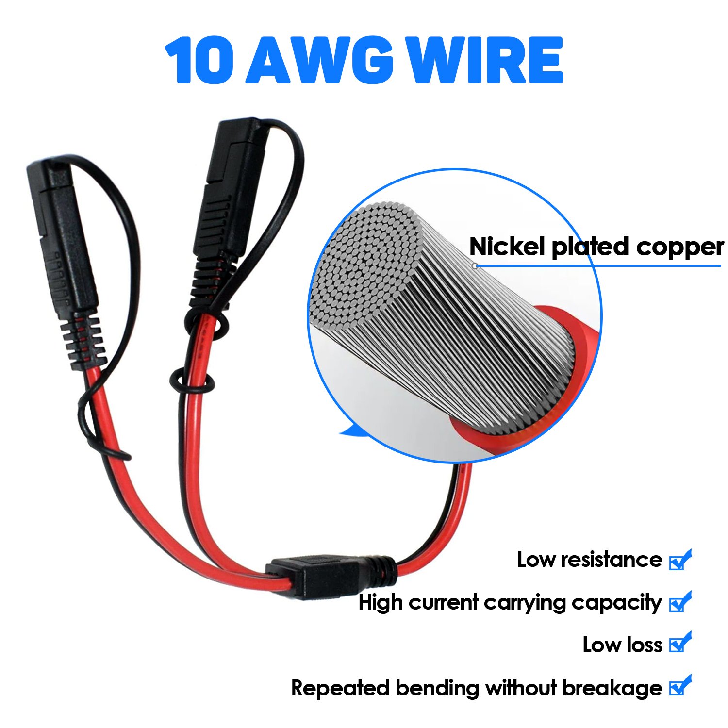 10AWG 30cm/1FT SAE Quick Connect Harness, SAE to SAE Extension Cable, Y Splitter 1 to 2 SAE Connector Cable Wire Harness for Automotive, Motorcycle, Solar Panel, etc.