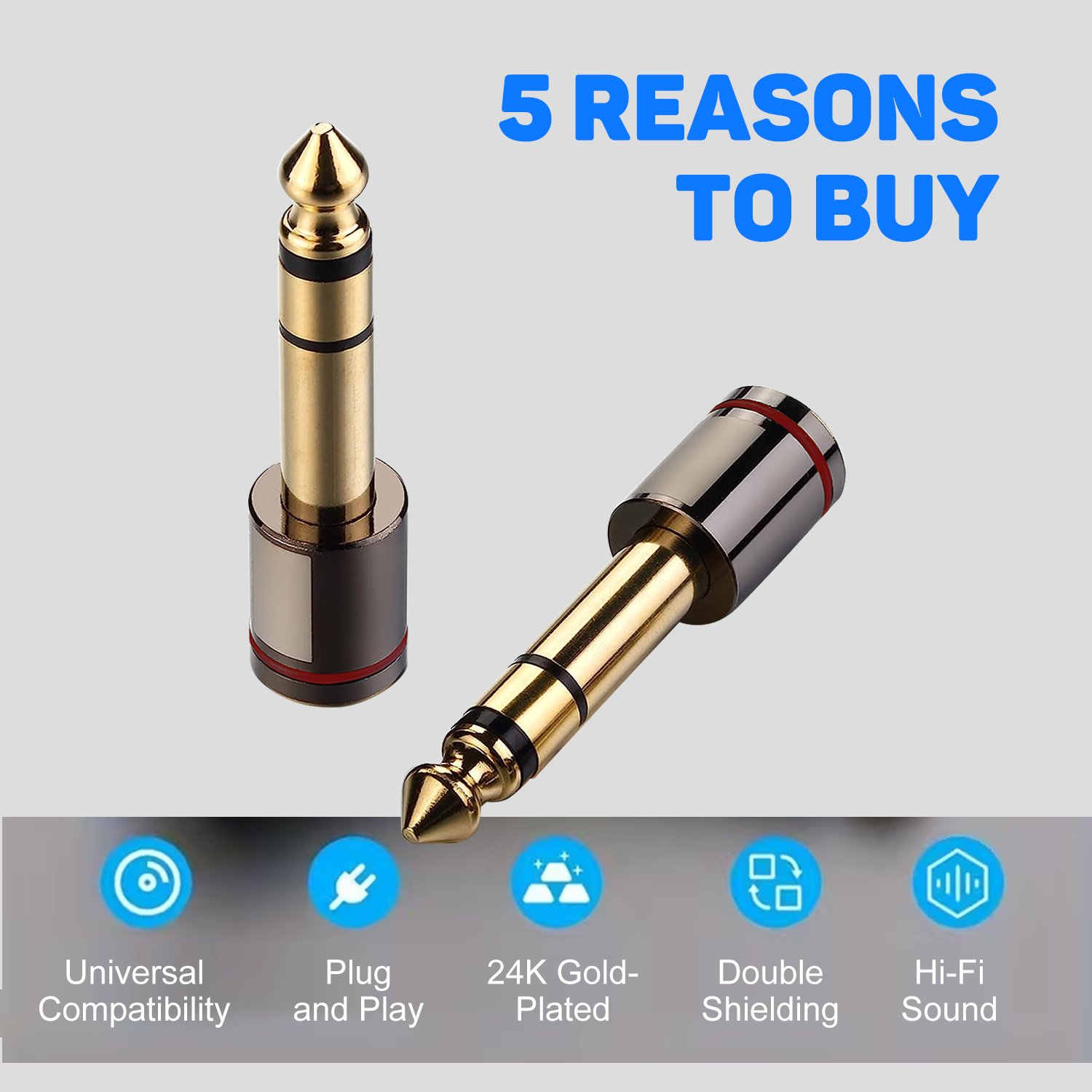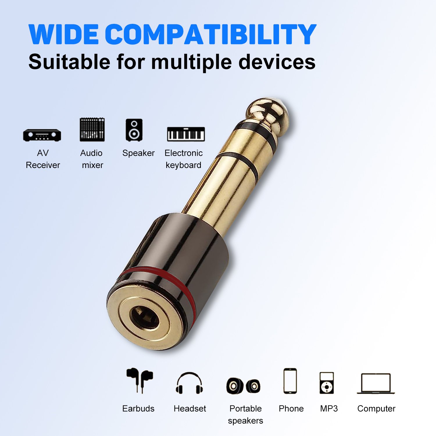 1PC Speaker Connectors, Gold-Plated 6.35mm 1/4″ Male to 3.5mm 1/8″ Female Stereo Audio Converter Adapter, Hi-Fi Audio Connector for AUX Cable Guitar Amplifier Headphone Audio Equipment