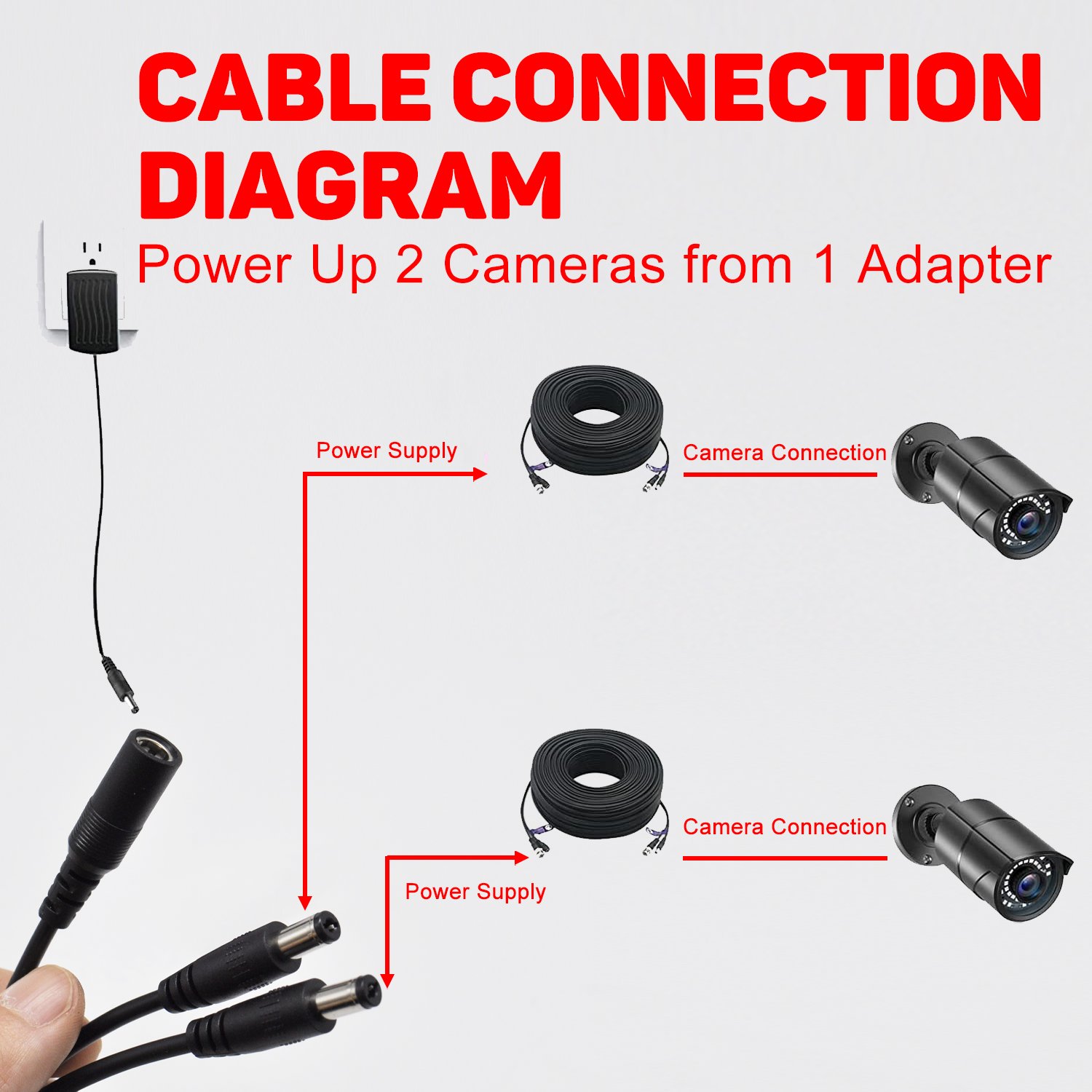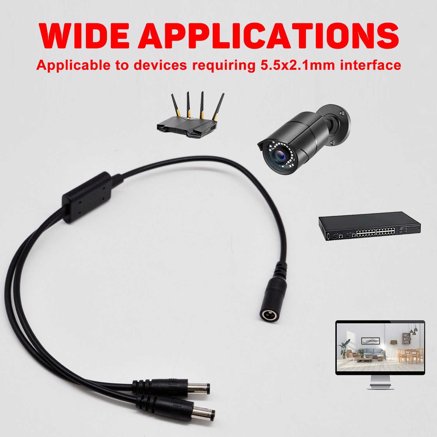 2 to1 DC Power Splitter Cable 1 Female to Plug Connection, 5.5mm x 2.1mm DC Power Supply Splitter Cord for CCTV Security Camera Led Strip Light