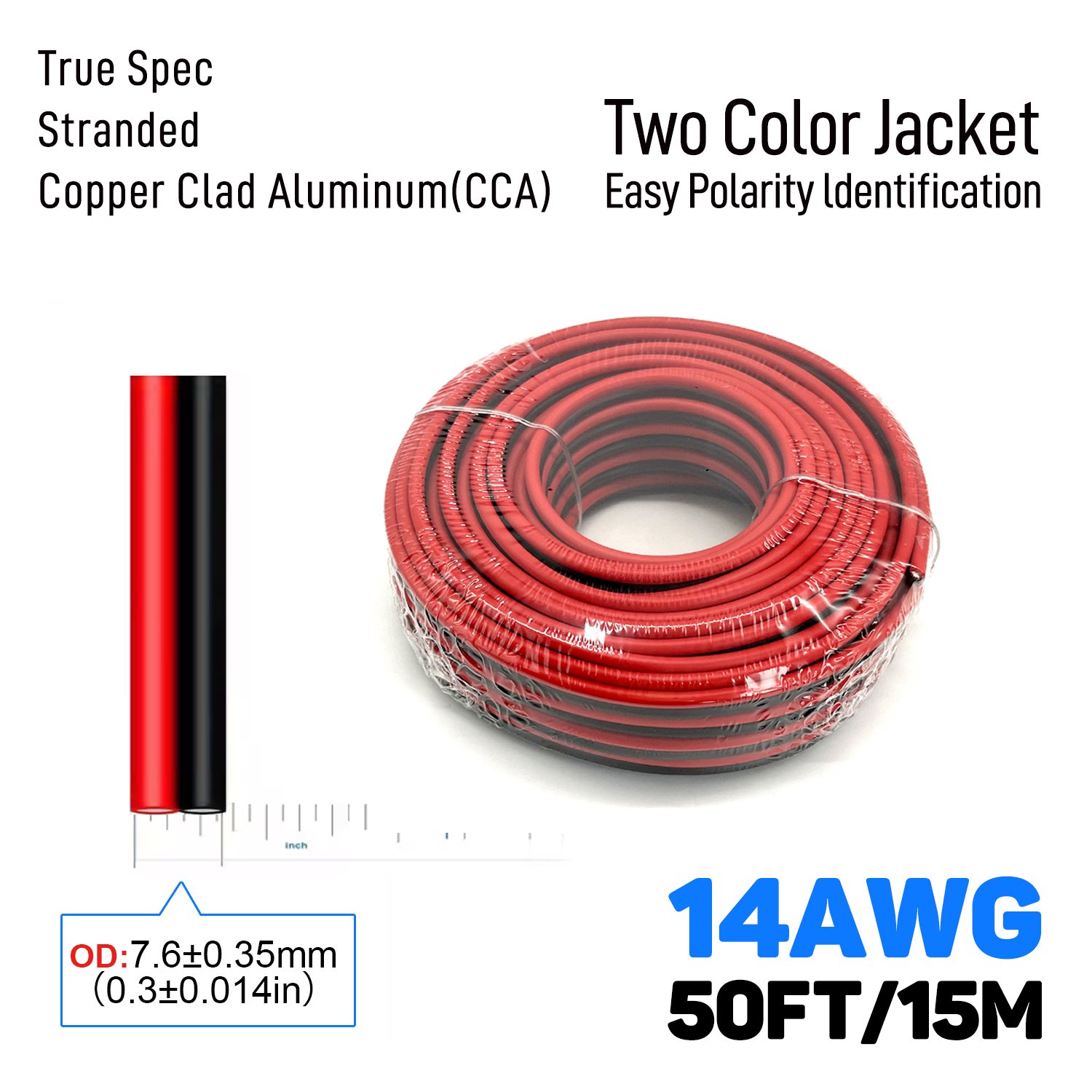 30m/100FT 14AWG Home Theater Speaker Wire, Red and Black Bicolor CCA & CCA materials Hookup Wire, , for LED Strip Lighting, surround sound, radio, 12V/24V/30V(Note: it’s not the power cable, cannot be used for power connection)