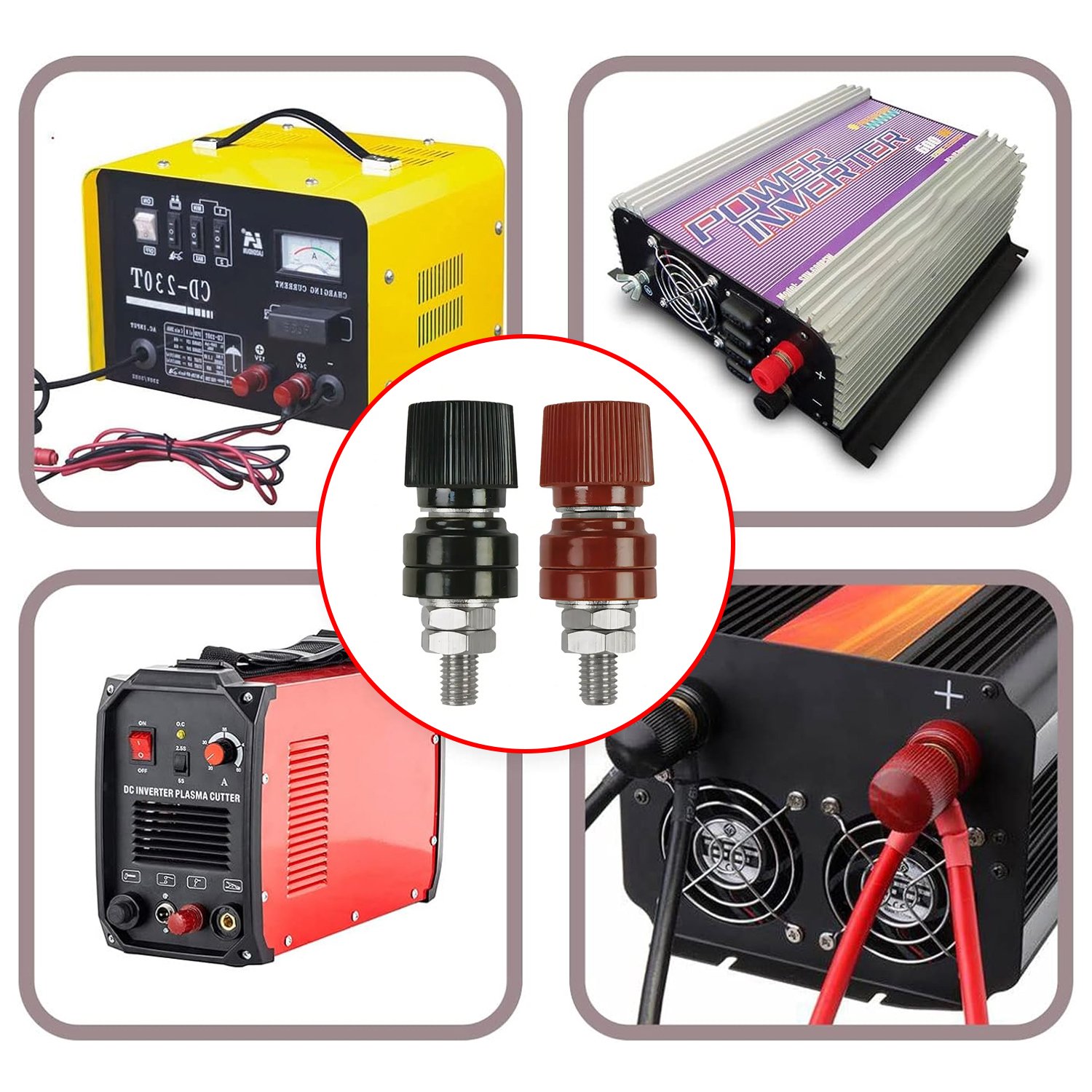 Battery Terminal Connector 2pcs/Set, M8 8mm Bolt 5/16″ Copper Stud, Red Black Remote Power Junction Post Block, High-Quality Auto Replacement Parts Kit