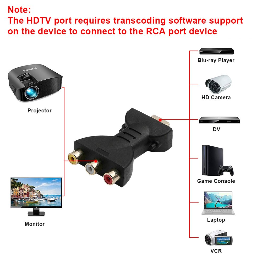 HDTV Male to 3 RCA Female Composite Audio Video Adapter, Uni-Directional HDTV to 3RCA Converter for TV HDTV, DVD, Projector, Home Theater and Other Devices