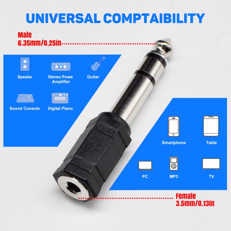 3PCS 3.5 mm to 1/4 adapter, 3.5mm Female to 6.35mm Male Audio Converter Connector, for Speaker Headphone Guitar Digital Piano Amp Keyboard Stereo Microphone AUX Cable