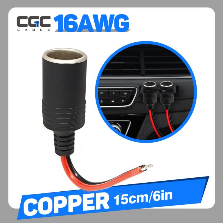 1PC 16AWG Replacement Car lighter socket with Lead – Car Power Connector Auto Accessories, 15cm/6in Female Plug to Tinned Terminal, Fits Most Vehicles, Easy Installation, Car Charger Socket Plug Adapter, Durable Plastic, No Battery Required