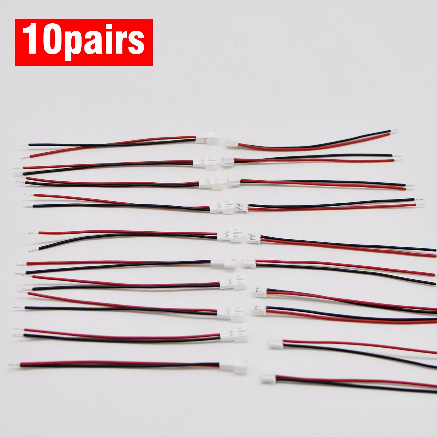 10Pairs JST connector kit, ph2.0 Connector | 2Pin Female and Male Plug Connector with 100mm Wire Cables