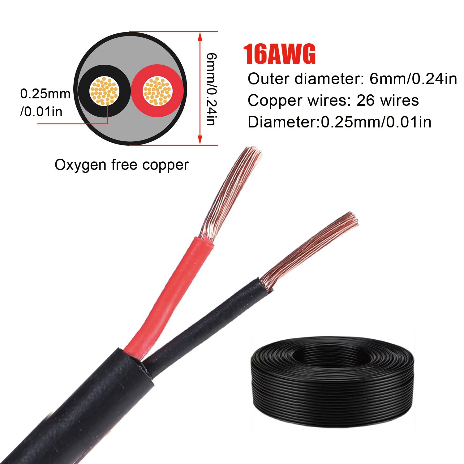 16AWG 30m/100FT Low Voltage Landscape Wire, Pure Copper 2 Conductor Electrical Wire – 12V/24V DC Low Voltage, PVC Insulated for Automotive, LED Strip Lights, Marine Use
