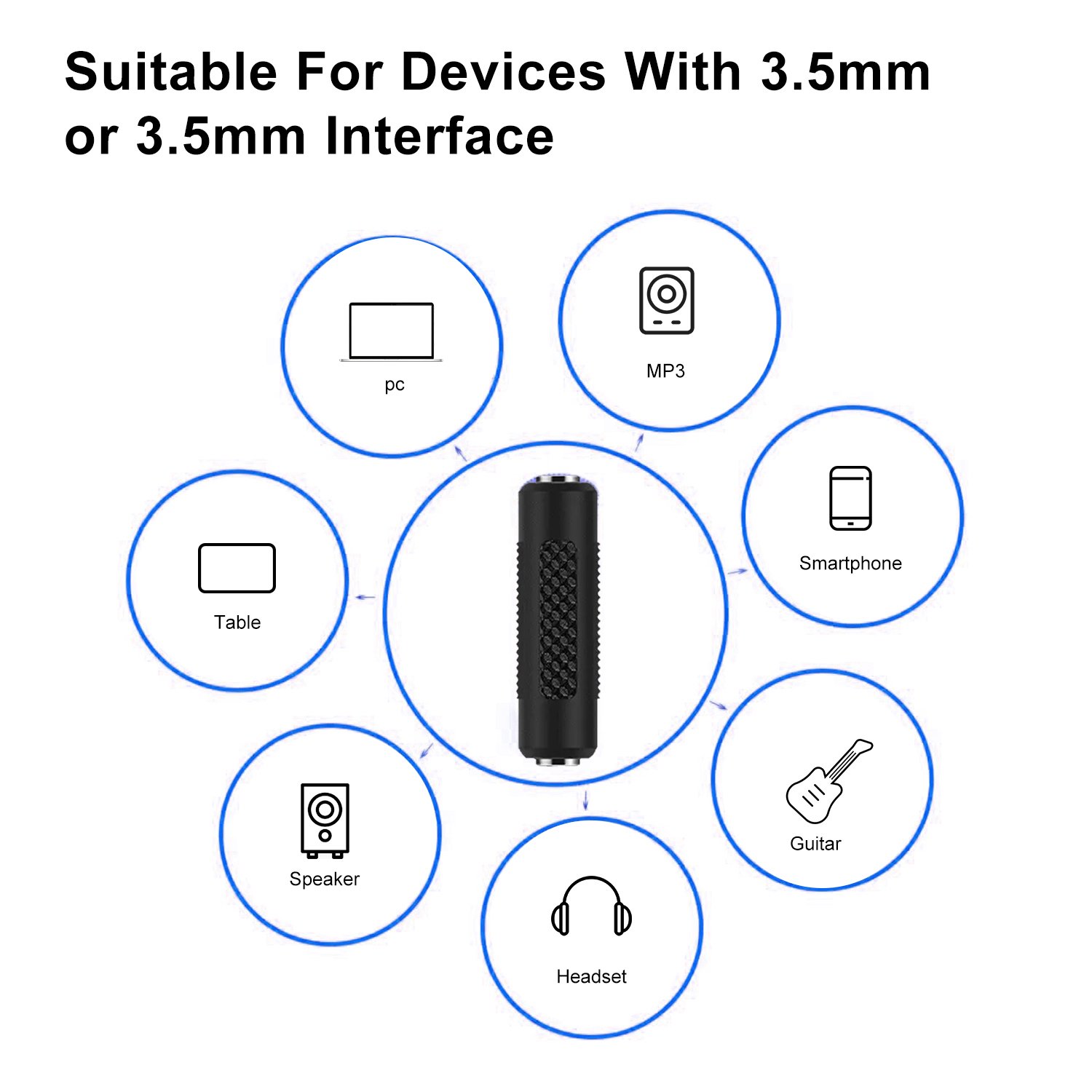 1PC Audio Female/Female Adapters, 3.5Mm Stereo Female to Female Coupler, Corrosion Resistant Universal Audio Replacement Adapter Accessory