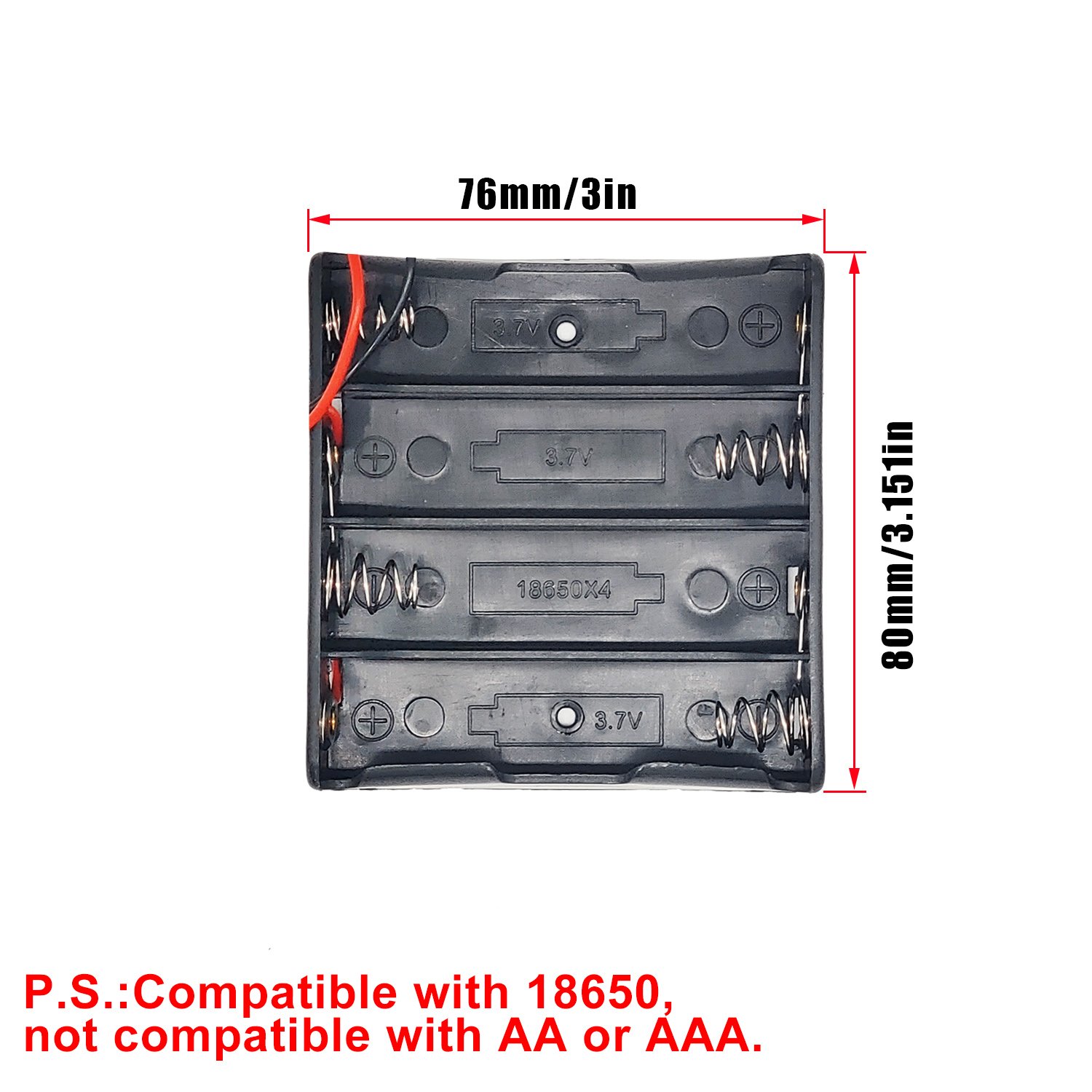 4Slot 18650 battery case with connector lead, 18650 Battery Clip With Connect Lead, 3.7V With Leads Black Plastic For 18650 Battery With Connect Lead