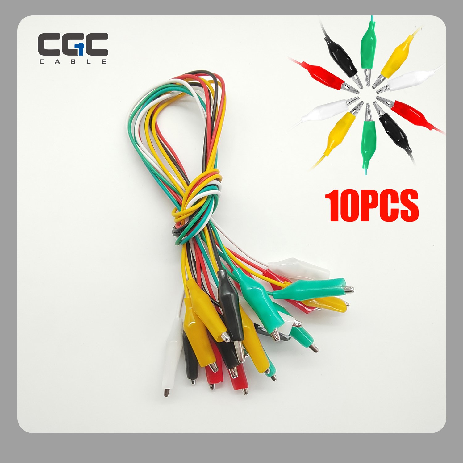 鳄鱼夹电线 10 个装,5 种颜色鳄鱼夹测试线跳线,带夹子的电缆,用于电气测试电路连接实验(长度:49 毫米/19 英寸)