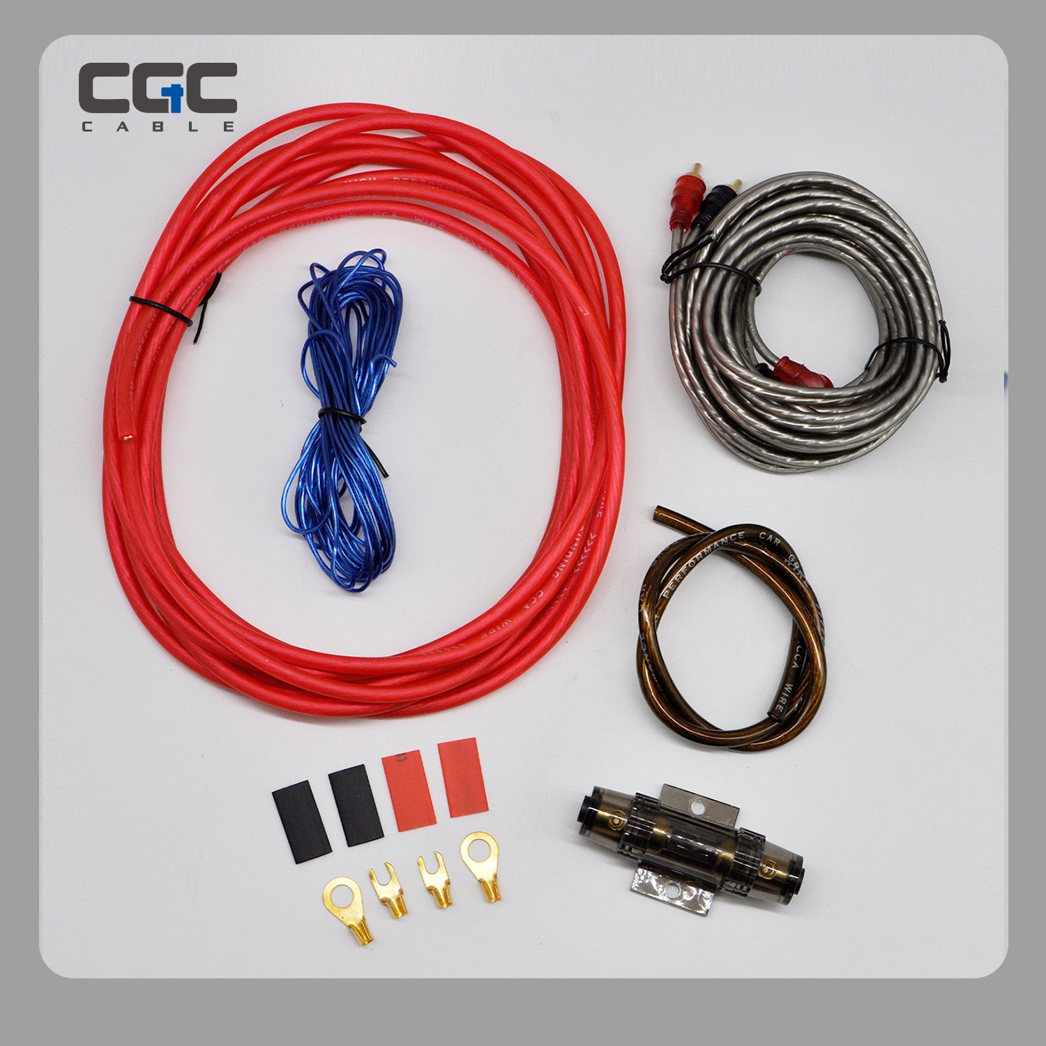 功放安装套件,8GA CCA 汽车音响扬声器线束,包含 RCA 线缆和扬声器线的完整功放安装套件